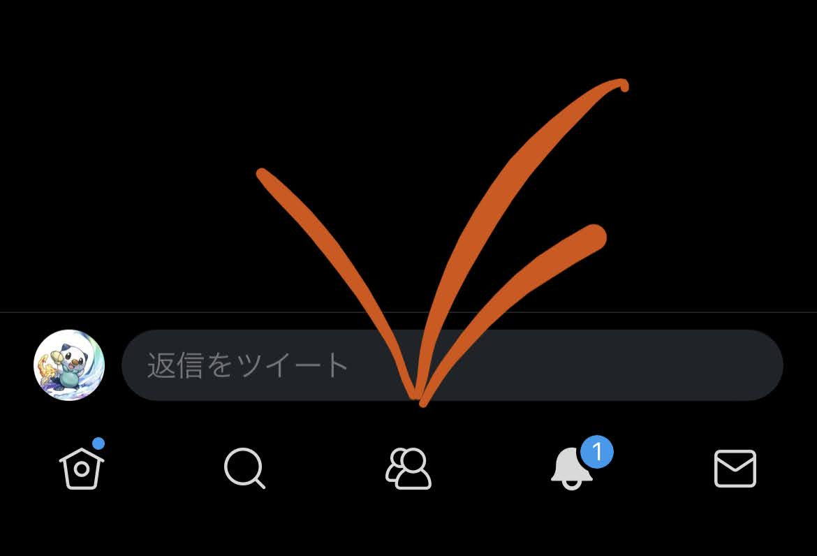 上記のコミュニティに入れましたら、ツイッターの下のバーにコミュニティのボタンが現れるかと思います。そちらを押してもらって….