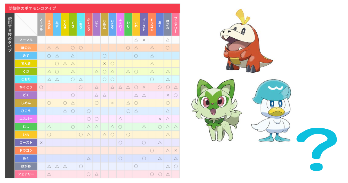 ポケモン初心者さんをどん底に叩きつけるのがこのタイプ相性表。
